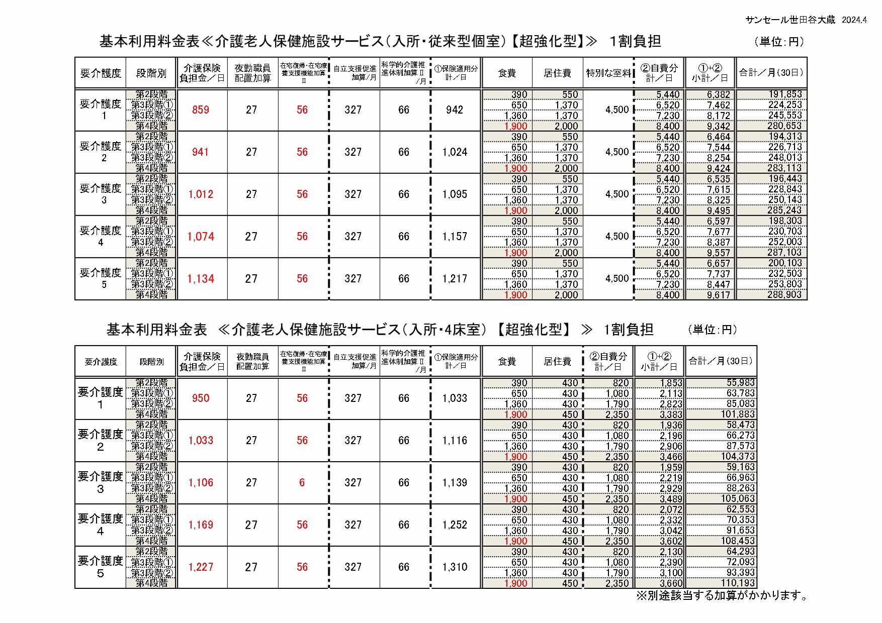 入所・4床室利用 介護度:要介護3(1割負担) 負担限度額認定証:無し