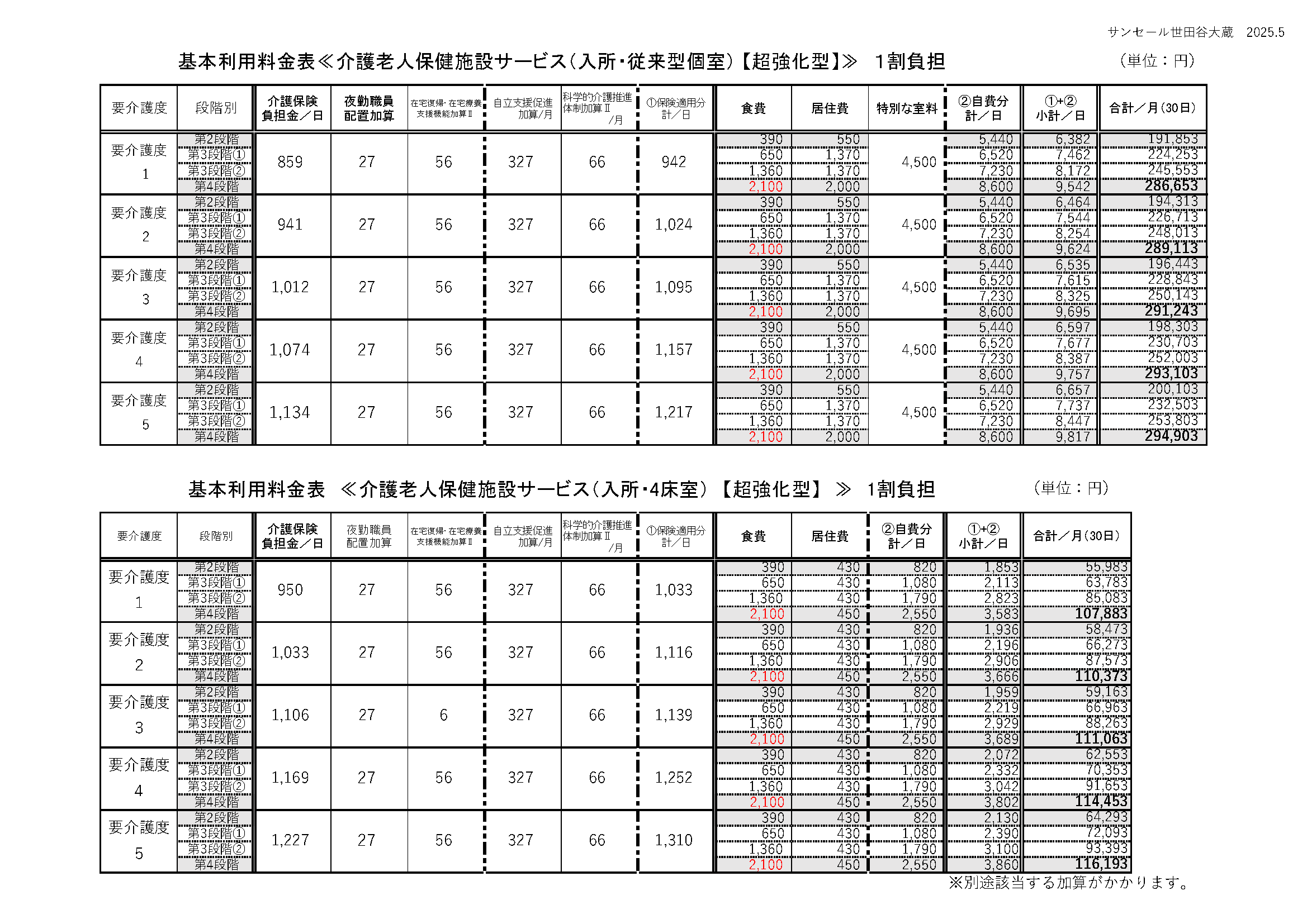 短期入所・4床室利用 介護度:要介護5(1割負担) 負担限度額認定証:無し